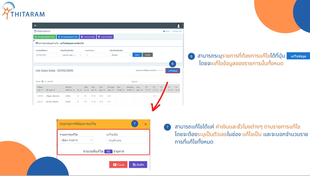 สามารถเเก้ไขได้เเค่ ค่าเงินเเละชั่วโมงต่างๆ ตามรายการเเก้ไข โดยจะต้องระบุเป็นตัวเลขในช่อง เเก้ไขเป็น เเละจะบอกจำนวนรายการที่เเก้ไขทั้งหมด
