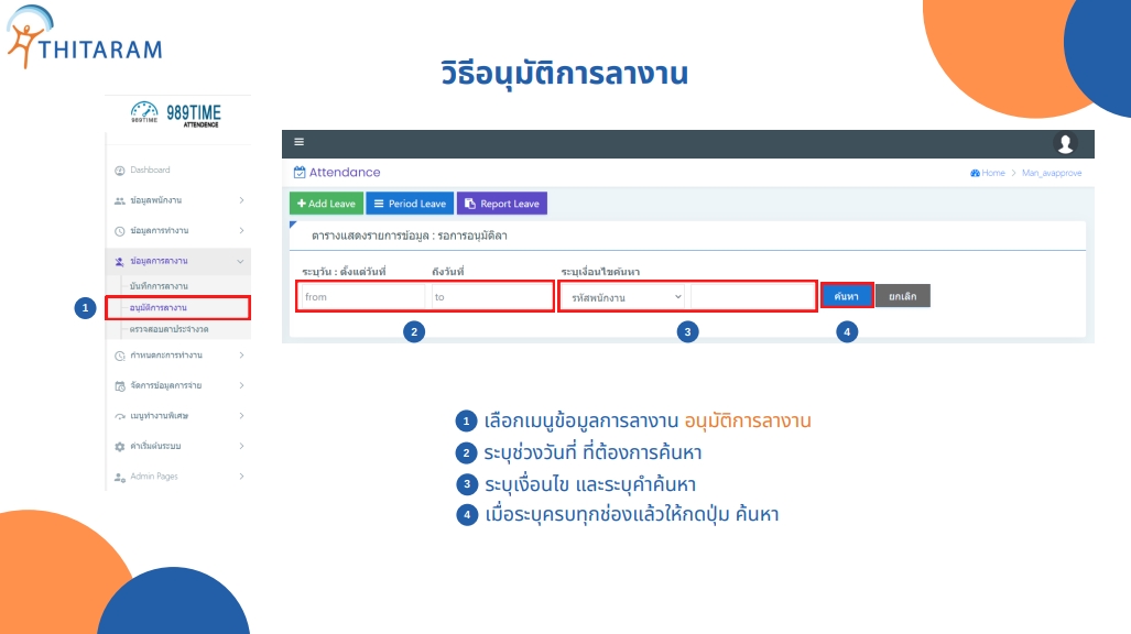 เลือกเมนูข้อมูลการลางาน อนุมัติการลางาน