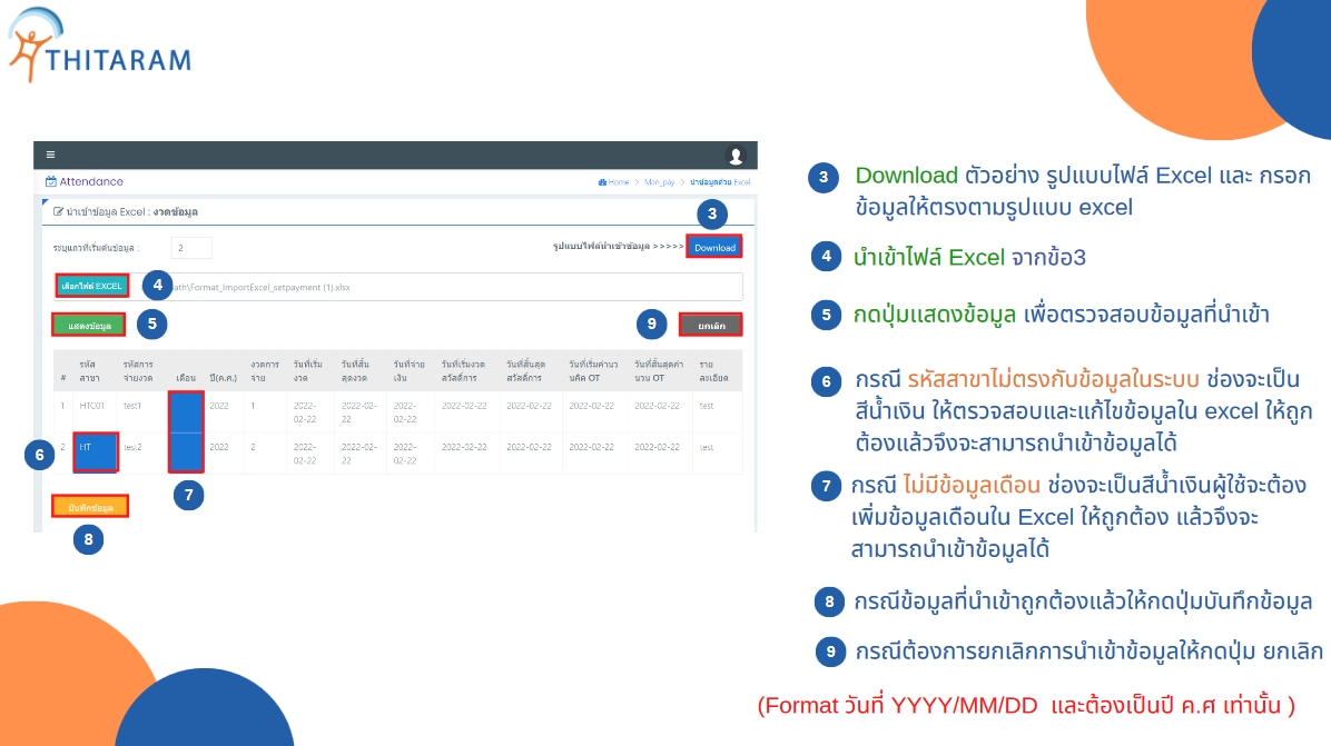 Download ตัวอย่าง รูปแบบไฟล์ Excel และ กรอกข้อมูลให้ตรงตามรูปแบบ excel